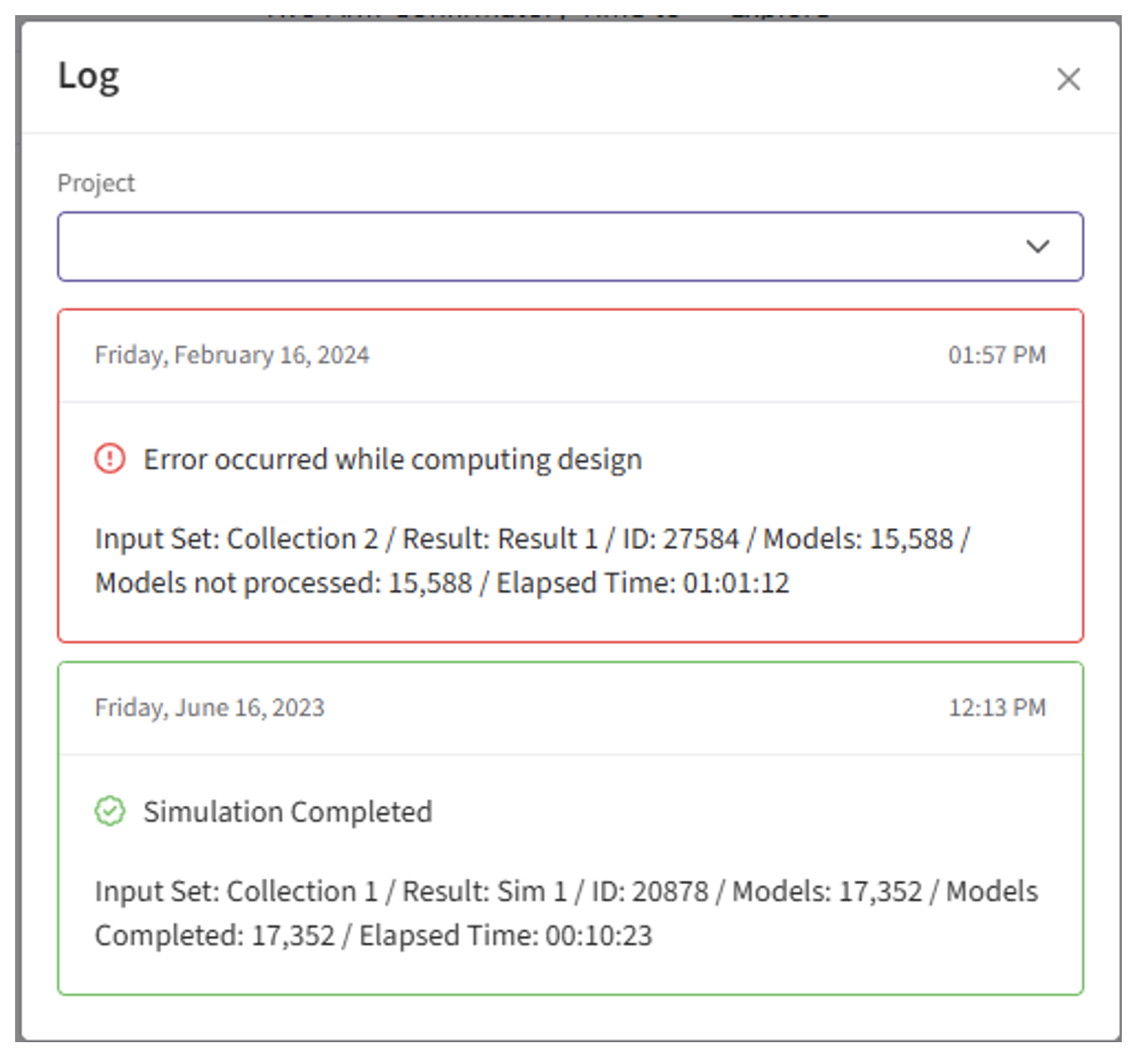 - If the simulation failed, open the Log window to see if there are any helpful error messages.