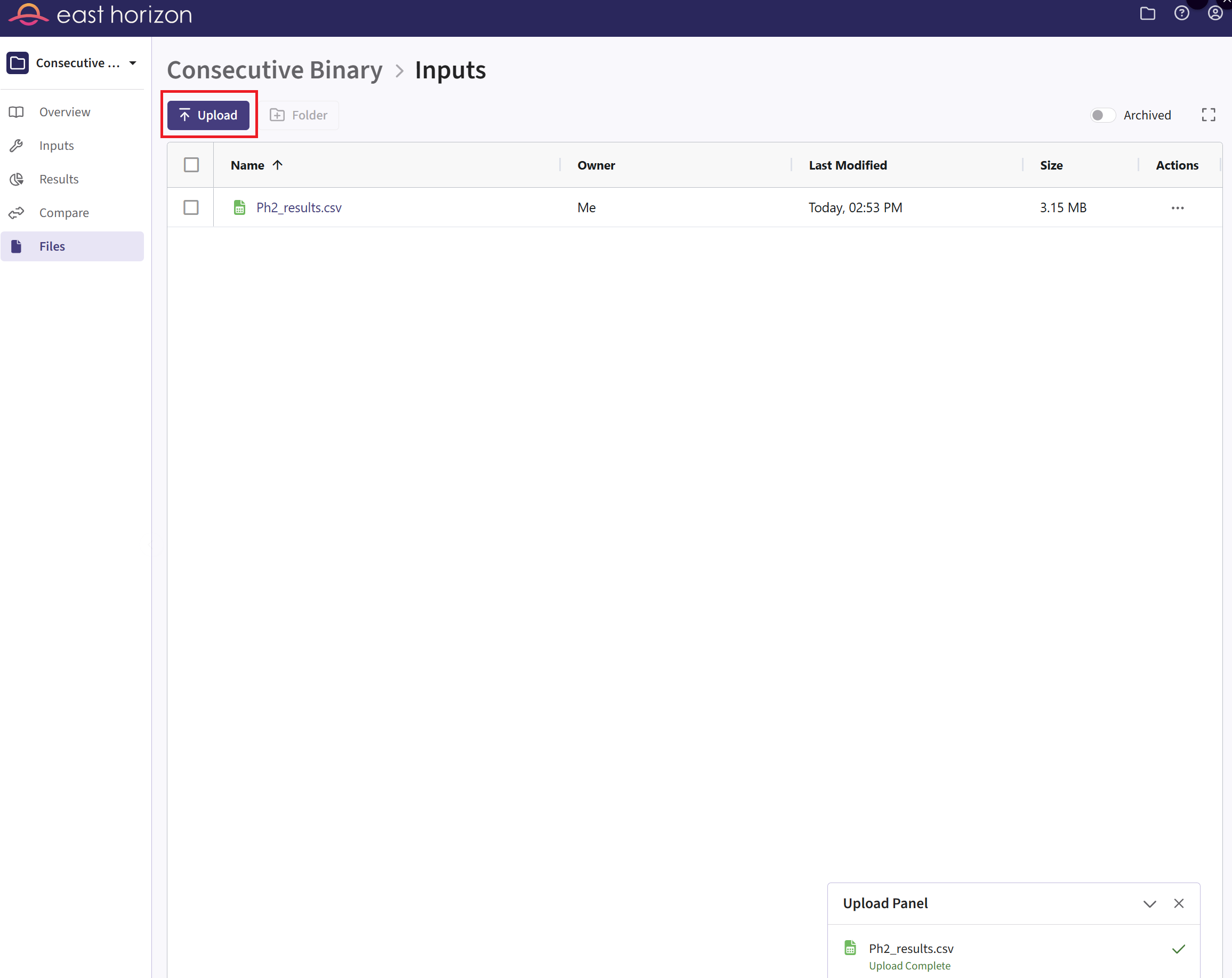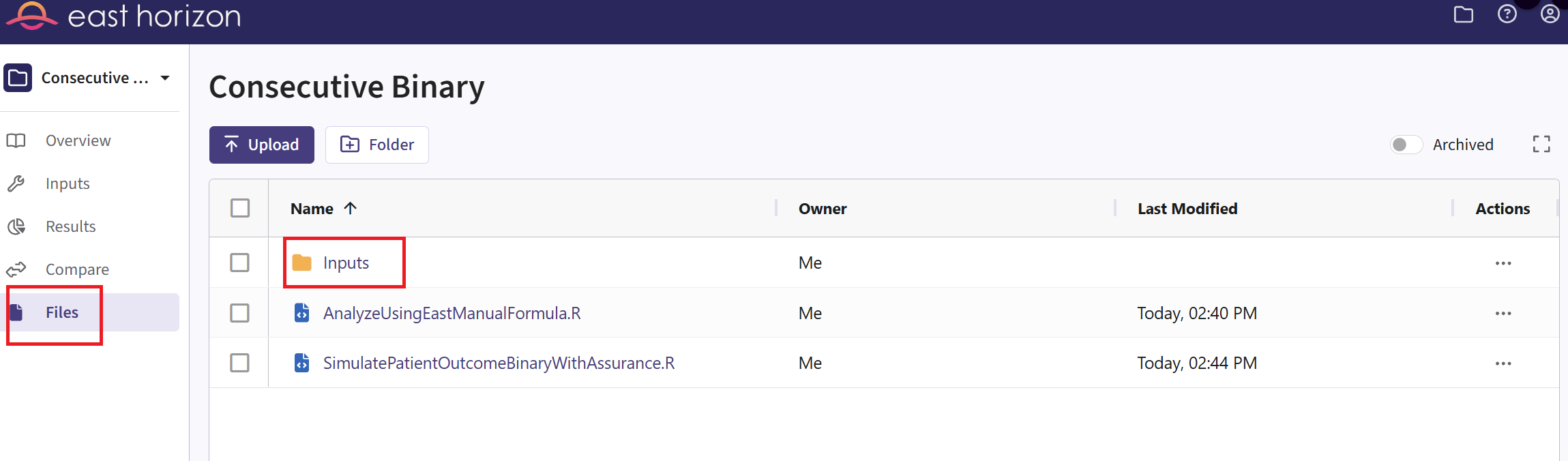 - Navigate to the Files page and click on the Inputs folder.