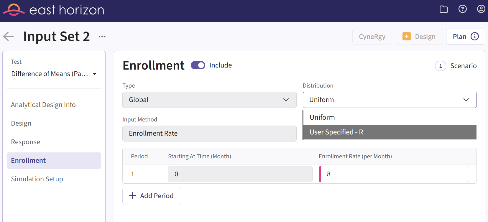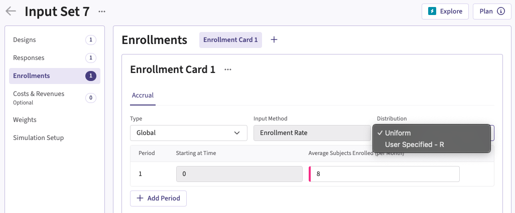 - Select User Specified-R from the dropdown in the Distribution field in the Enrollment tab.