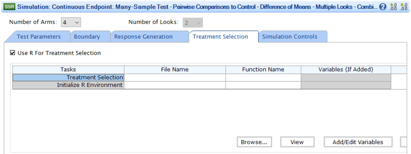 - In the Simulation Input window, navigate to the tab Treatment Selection and select Use R For Treatment Selection.